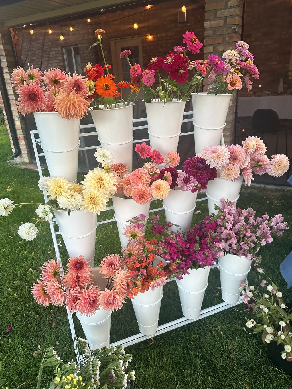 Give your guests the gift of flower arranging with our flower stand and seasonal flowers!